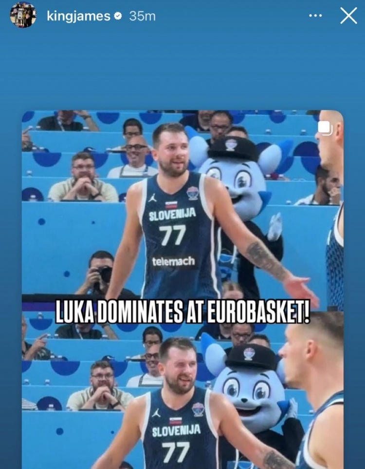 NBA官方與FIBA官方發(fā)出東契奇本場比賽高光集錦,封面圖配文為:“盧卡稱霸歐錦賽!”