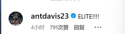 詹姆斯在INS上也曬出了自己的名人堂夾克,前隊友濃眉評論道:“精英?。。?!”