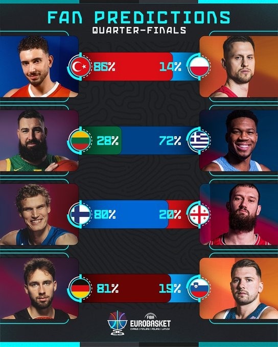 歐錦賽官方發(fā)布1/4決賽球迷預(yù)測(cè)結(jié)果,具體如下: