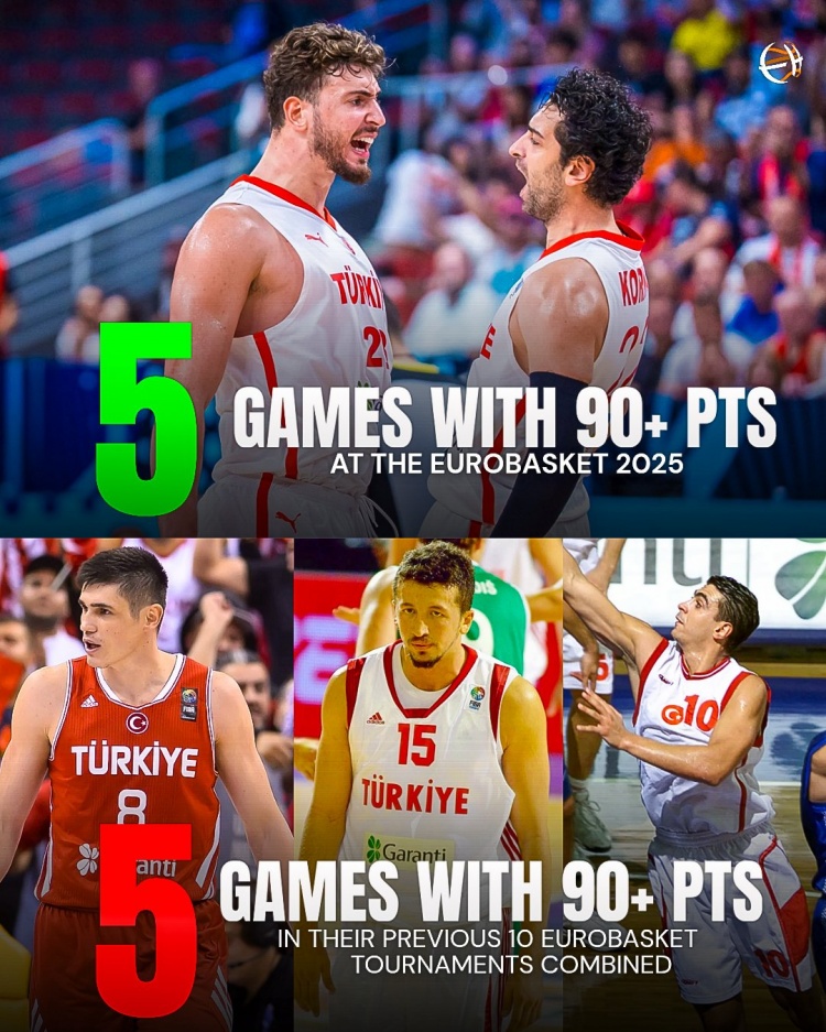 而在土耳其男籃過去十次的歐錦賽經(jīng)歷中,他們一共只有5次得分達(dá)到90分。