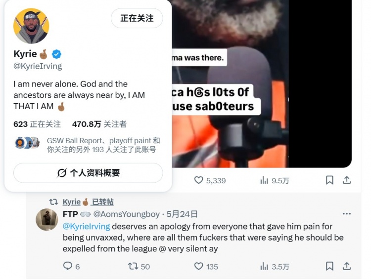 他寫(xiě)道:“所有因歐文沒(méi)打疫苗而讓他痛苦的人,歐文應(yīng)該得到你們的道歉。那些說(shuō)他應(yīng)該被逐出聯(lián)盟的XX都去哪了?怎么沉默了?”