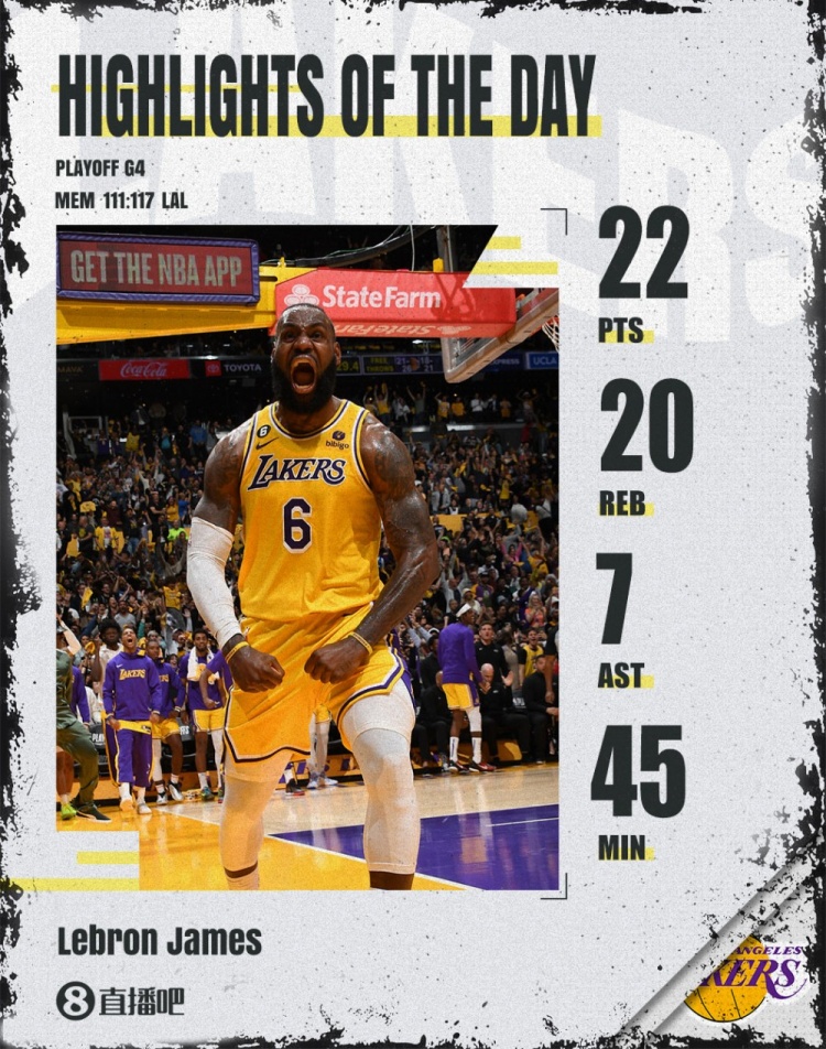 NBA季后賽首輪G4,湖人主場(chǎng)加時(shí)117-111逆轉(zhuǎn)灰熊,將大比分?jǐn)U大為3-1。