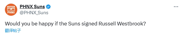 05月31日訊 今日,太陽媒體PHNX Suns在社交媒體上發(fā)問:“如果拉塞爾-威斯布魯克加盟太陽,你樂意嗎?”