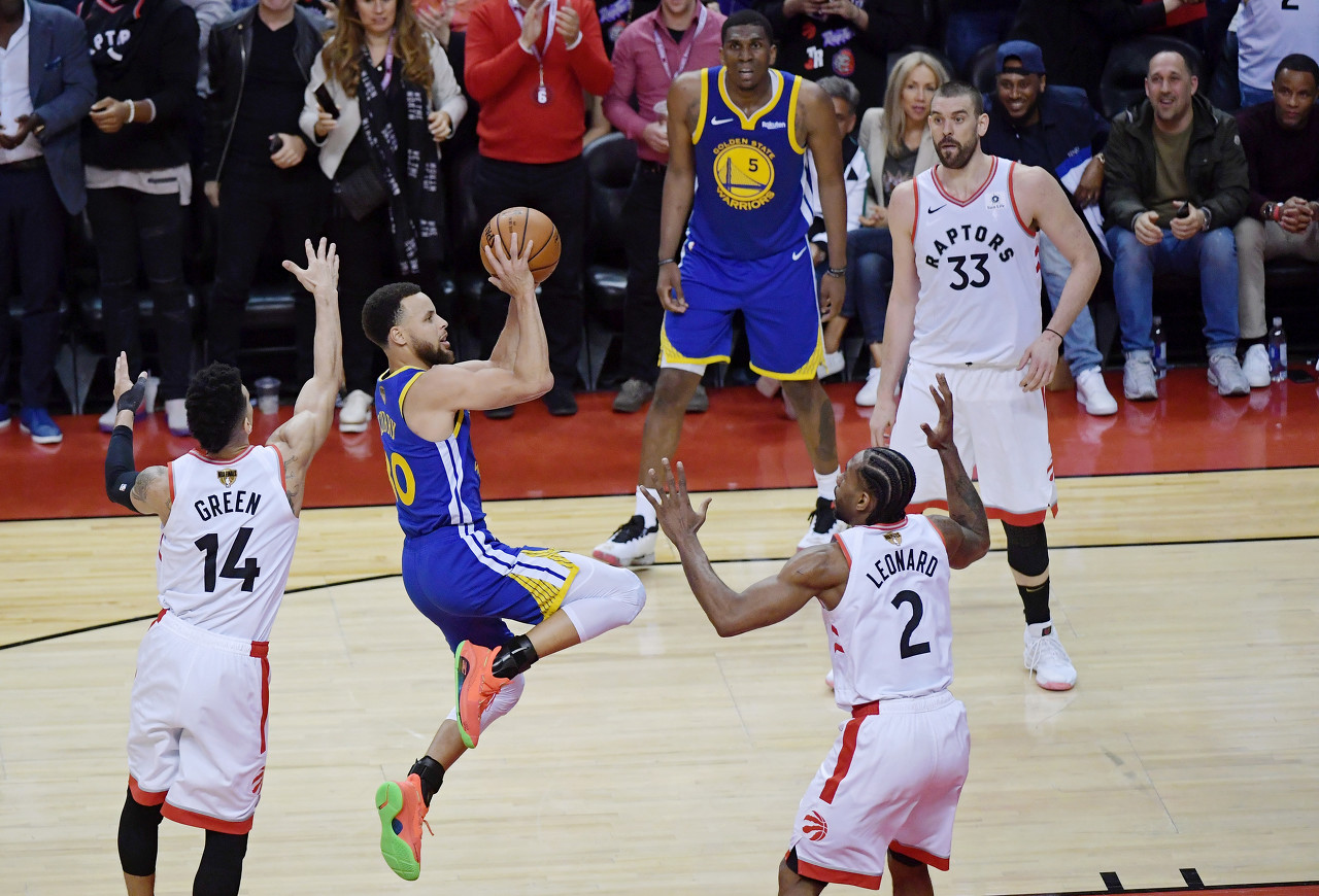 但后者頂著高壓防守仍然31中14、其中三分14中6,轟下了個人總決賽紀錄的47分外加8板7助,追夢也“爆砍”17分,但兩人均是空砍,猛龍6人上雙,123-109戰(zhàn)勝勇士。