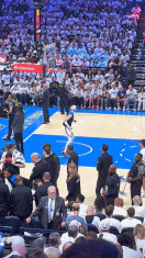 第三節(jié)開(kāi)始,亞歷山大后仰投中后,我身后的球迷——大概是萊納德球迷——喊:“It very Kawhi-like!”我身旁的球迷絮叨“他大概能得40分”。