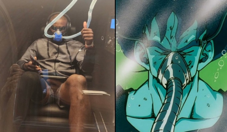 照片中,杰倫-布朗戴著面罩,沖鏡頭伸出了大拇指。