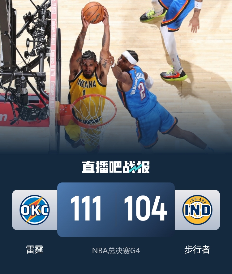 比賽上來,雷霆先拿四分搶下開局,但之后步行者連續(xù)的三分迅速占據(jù)場(chǎng)上主動(dòng),雖然雷霆利用一波9-0的小高潮追平比分,不過西亞卡姆瘋狂搶斷造殺傷還是沒給他們反超的機(jī)會(huì),次節(jié)雙方開始展開拉鋸,場(chǎng)上比分交替領(lǐng)先,半場(chǎng)結(jié)束時(shí)雷霆仍落后3分;下半場(chǎng)回來,雷霆的進(jìn)攻表現(xiàn)還是不算太好,步行者抓住機(jī)會(huì)在系列賽首次獲得兩位數(shù)的領(lǐng)先優(yōu)勢(shì),末節(jié)雷霆奮起直追并及時(shí)抹平分差,比賽懸念再次打到最后,關(guān)鍵時(shí)刻亞歷山大個(gè)人連續(xù)得分,馬瑟林兩罰全丟,隨后又在發(fā)球前犯規(guī)再送一罰一擲,最終雷霆逆轉(zhuǎn)步行者將大比分追至2-2平。