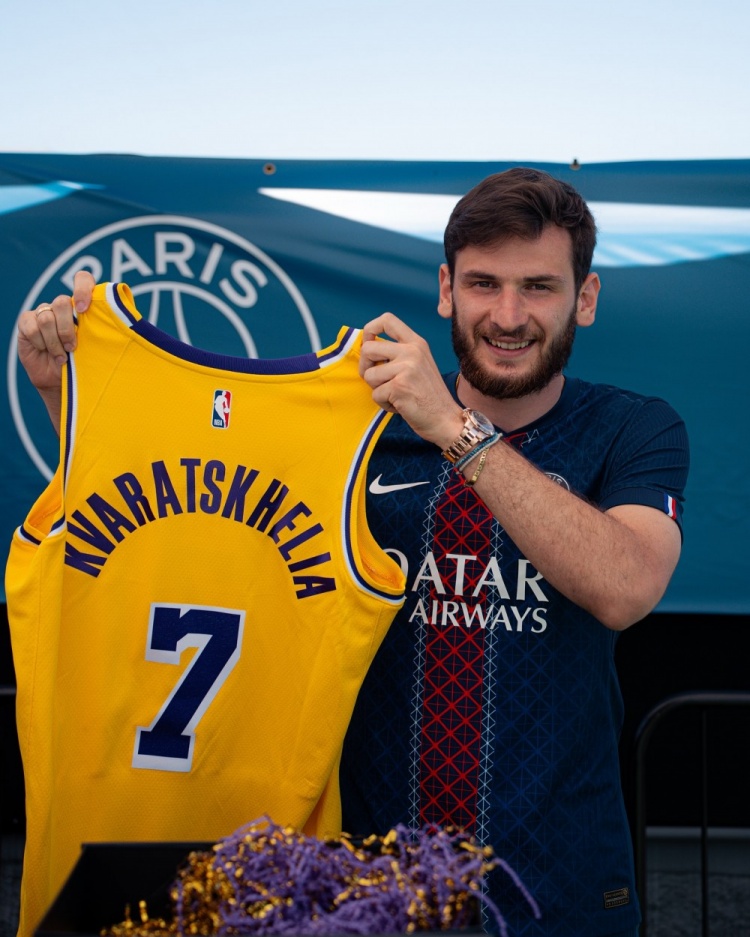 目前巴黎圣日耳曼在美國參加世俱杯,而他們前兩場比賽都是在洛杉磯進(jìn)行,下一場將移師西雅圖。球隊(duì)在洛杉磯的最后一天,也收到洛杉磯湖人的特別禮物。隊(duì)中登貝萊、克瓦拉茨赫利亞、法比安、李剛?cè)蔬€有薩福諾夫等人獲贈湖人專屬球衣。