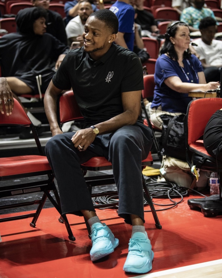 而??怂菇裉爝€有特別的小心機(jī),他今天穿上了他個人第二代簽名鞋F(xiàn)ox 2,這也是這款球鞋的首次公開亮相。