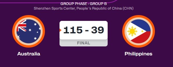 全場比賽澳大利亞命中率61%,六人得分上雙;菲律賓命中率僅有27%,無人得分上雙,最后一節(jié)僅得2分。
