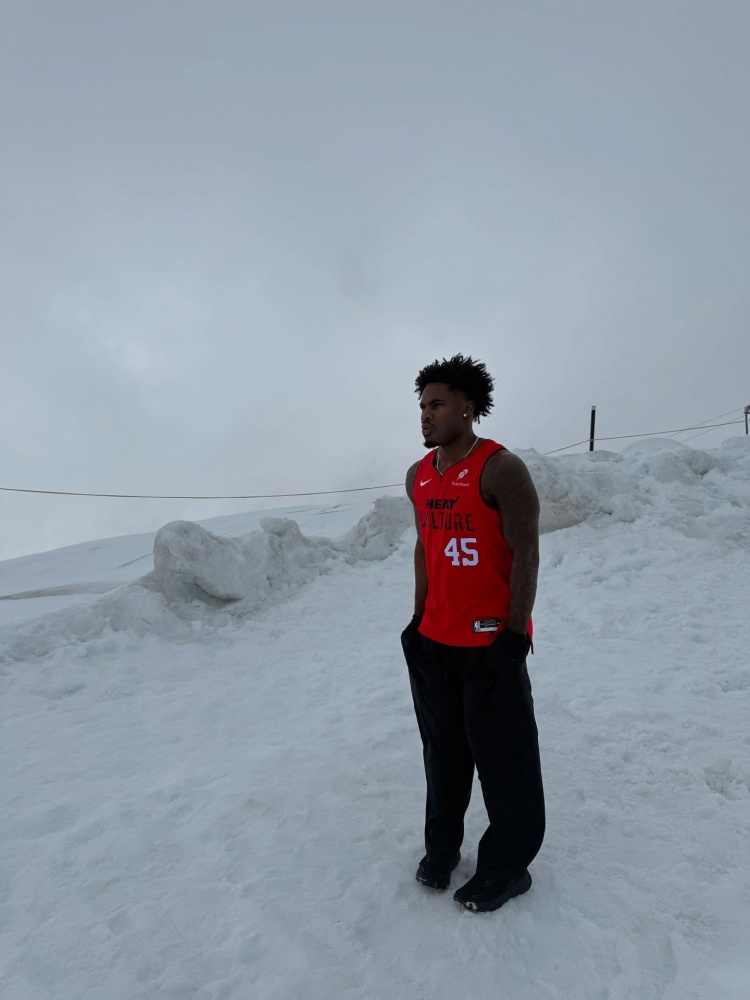 7月16日訊 近日,熱火球員戴維恩-米切爾前往瑞士旅行。米切爾身穿印有自己外號(hào)“Off-Night”的球衣,站在冰天雪地中,略顯寒冷。