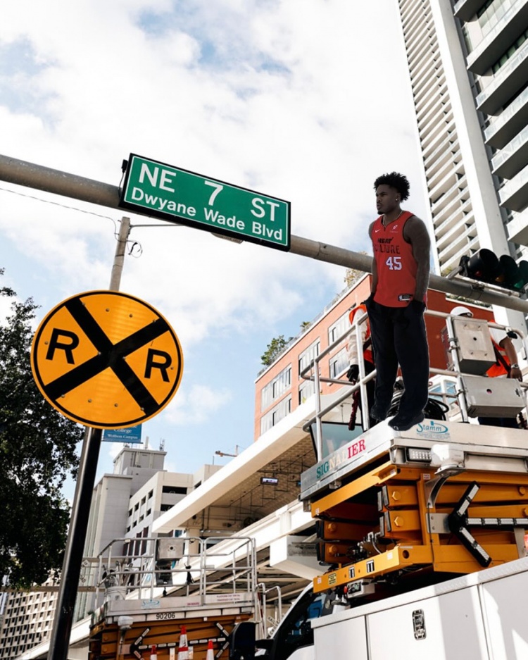 而熱火官方惡搞了自家球員一把,把米切爾的人像P到了各個(gè)景點(diǎn),并配文:“下一站去哪?”