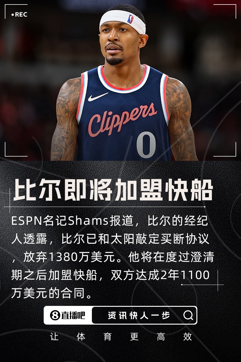 比爾同意和太陽達成買斷協(xié)議,然后(度過澄清期后)以一份2年1100萬美元的合同加盟快船。
