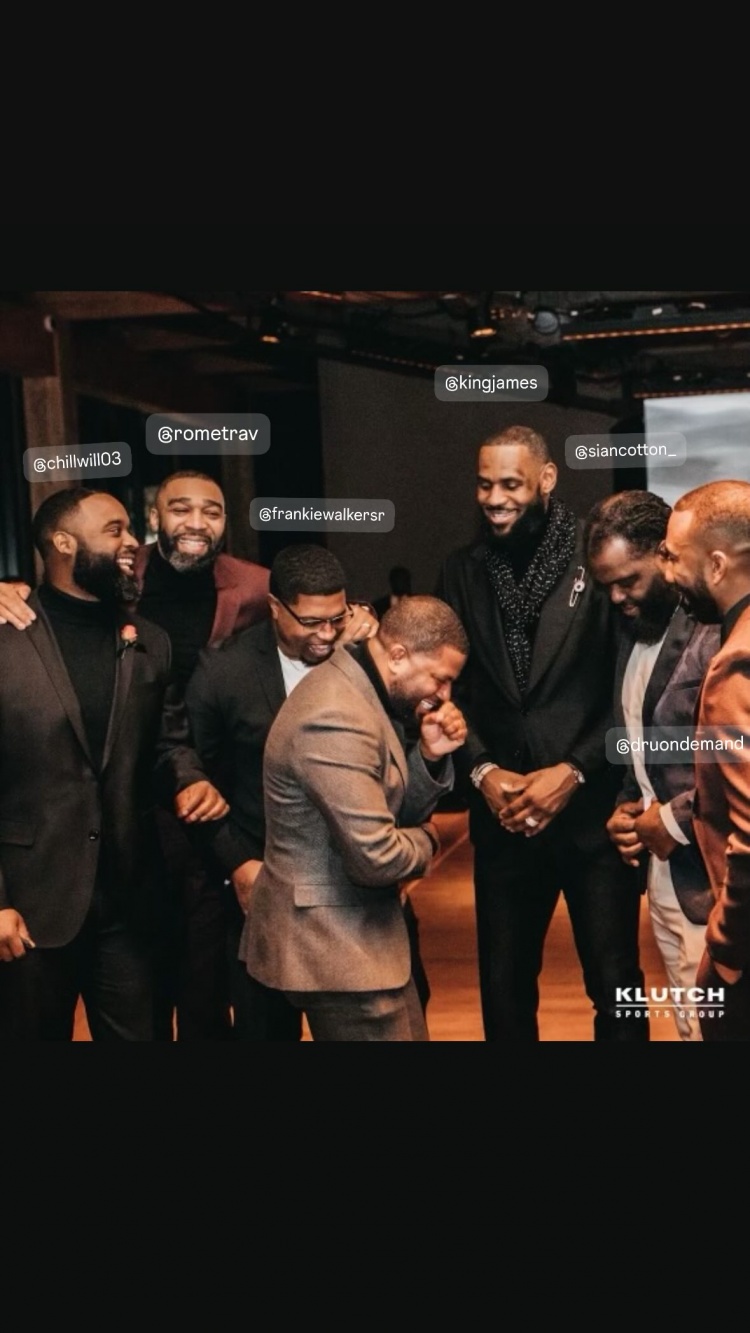 7月18日訊 今日,騎士副總經(jīng)理、詹姆斯的兒時好友布蘭登-威姆斯更新Instagram Story,曬出他與詹姆斯等人的合影。