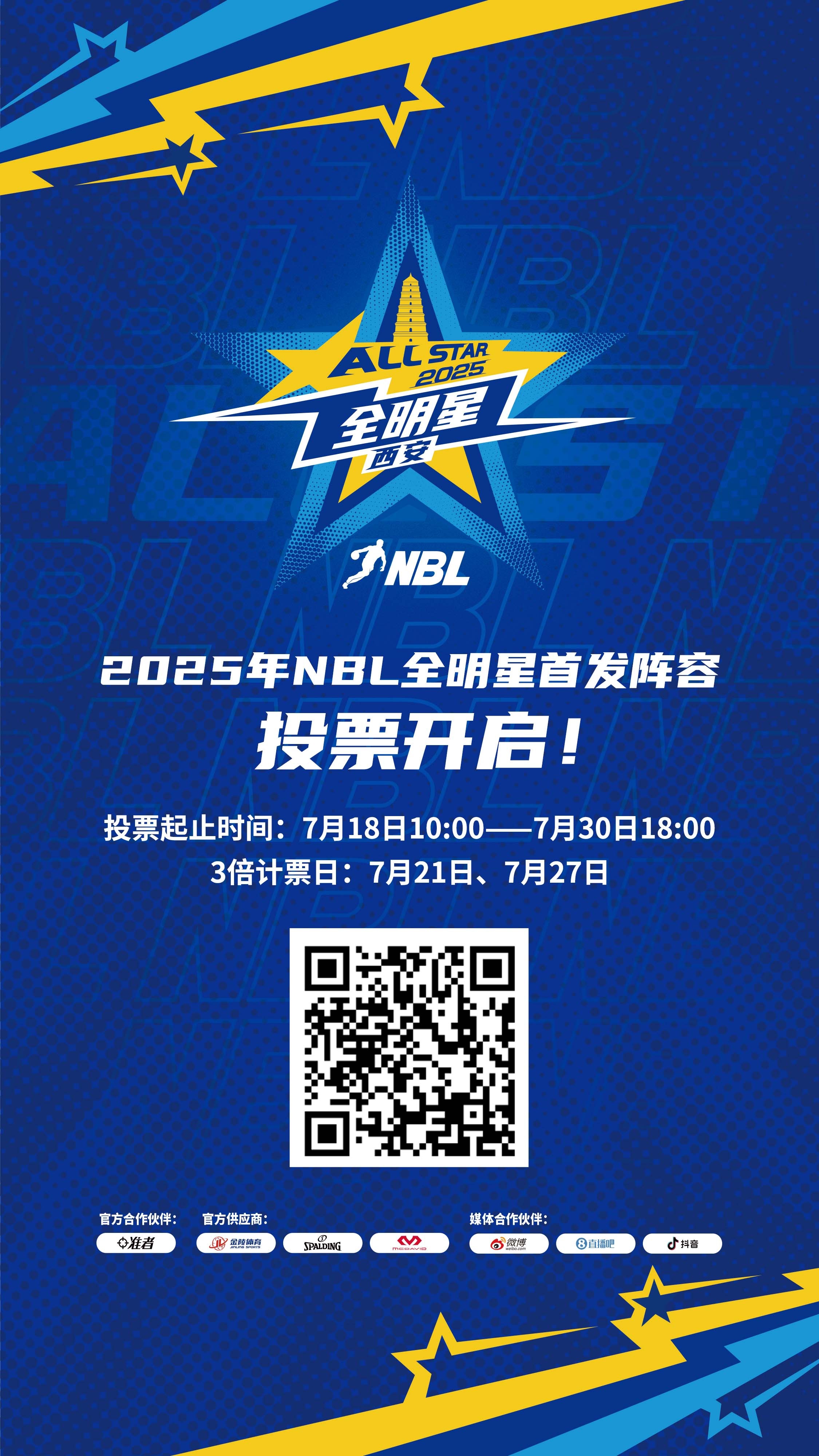 2025年全國男子籃球聯(lián)賽全明星周末將于8月10日19:30在陜西省體育館BE中心舉行,首發(fā)陣容投票今日開啟!