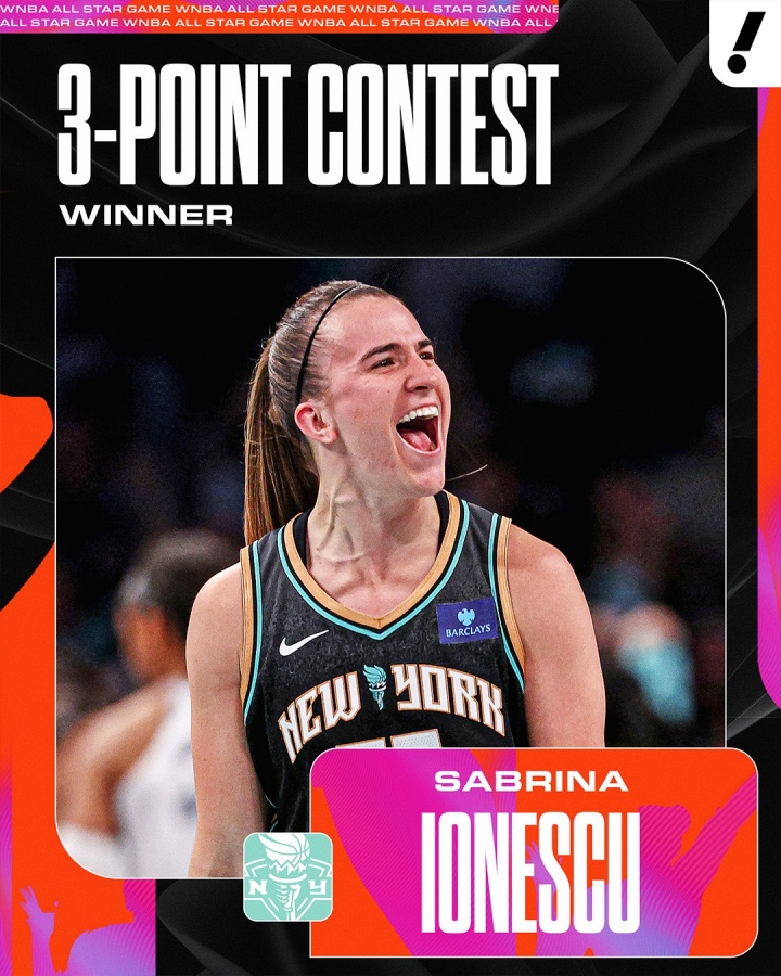 最終,約內(nèi)斯庫奪得本屆WNBA三分大賽冠軍,近三年兩奪該項賽事冠軍,兩次參賽均奪得冠軍,值得一提的是她本賽季的三分命中率僅為31.1%。