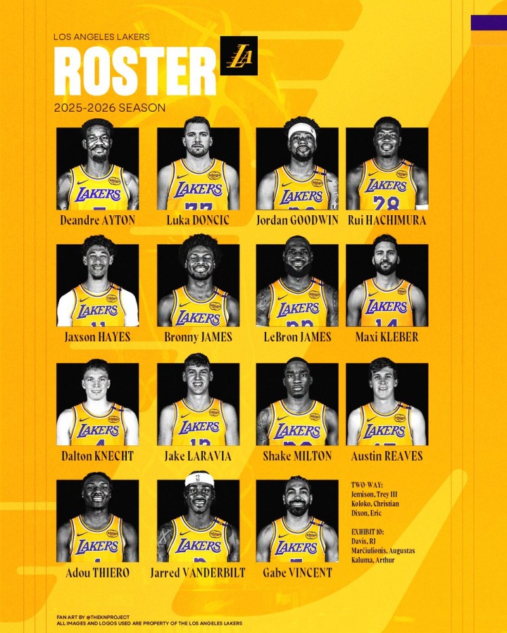 比賽期間轉(zhuǎn)播方曬出湖人目前的陣容深度:
