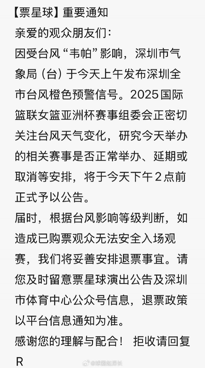 7月20日訊 今天,媒體人@球圈趙探長(zhǎng) 在社媒上曬出票星球發(fā)布的一則關(guān)于女籃亞洲杯的消息。