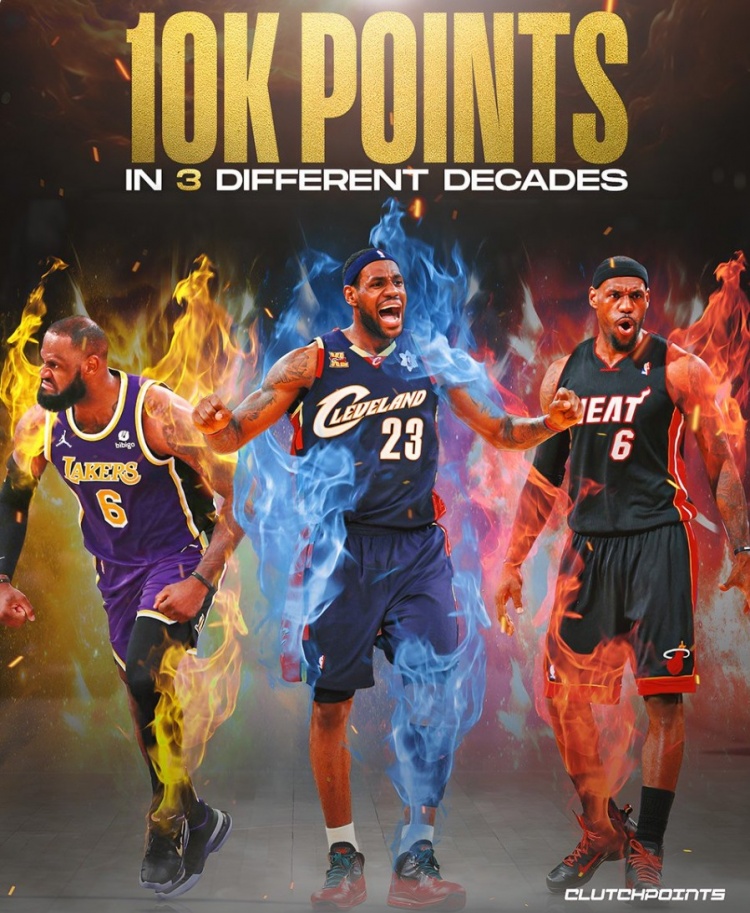 ??美媒:詹姆斯在三個(gè)不同十年得分皆10000+ 前無古人后無來者