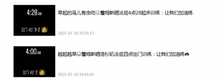起床更早了!詹姆斯社媒發(fā)布動(dòng)態(tài):凌晨3點(diǎn)50分就準(zhǔn)備訓(xùn)練??