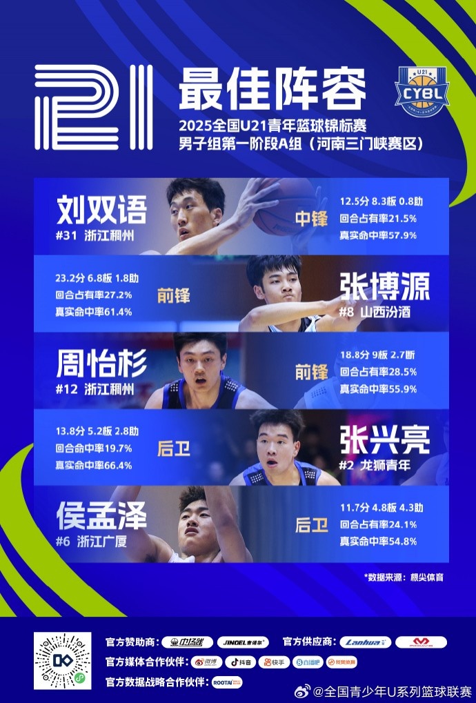 【U21男子組第一階段A組】2025全國(guó)(U21)青年籃球錦標(biāo)賽男子組第一階段A組三門(mén)峽賽區(qū)最佳陣容公布: