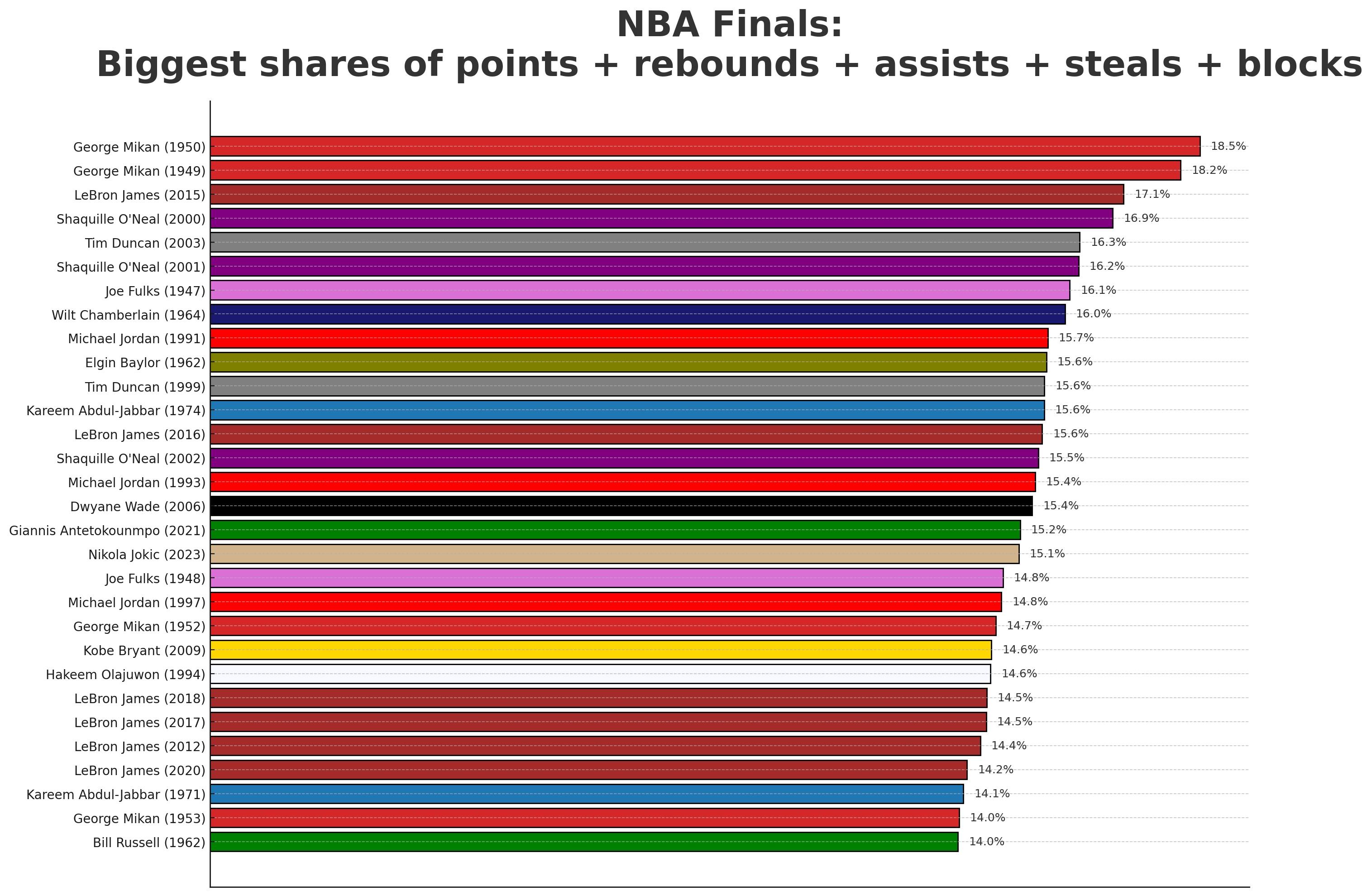 05月28日訊 今日,媒體HoopsHype統(tǒng)計(jì)了NBA歷史上總決賽綜合貢獻(xiàn)值(得分+籃板+助攻+搶斷+蓋帽)排序:
