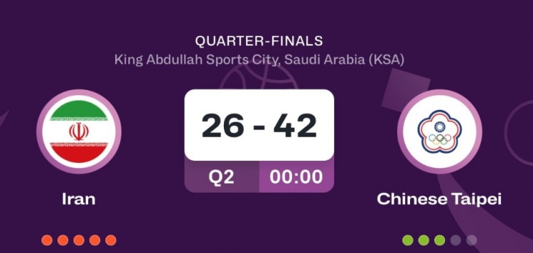 8月14日訊 男籃亞洲杯1/4決賽,中國(guó)臺(tái)北半場(chǎng)42-26領(lǐng)先伊朗。
