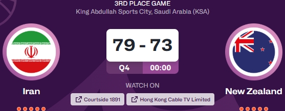08月17日訊 男籃亞洲杯銅牌賽,伊朗79-73戰(zhàn)勝新西蘭,獲得本屆亞洲杯季軍。