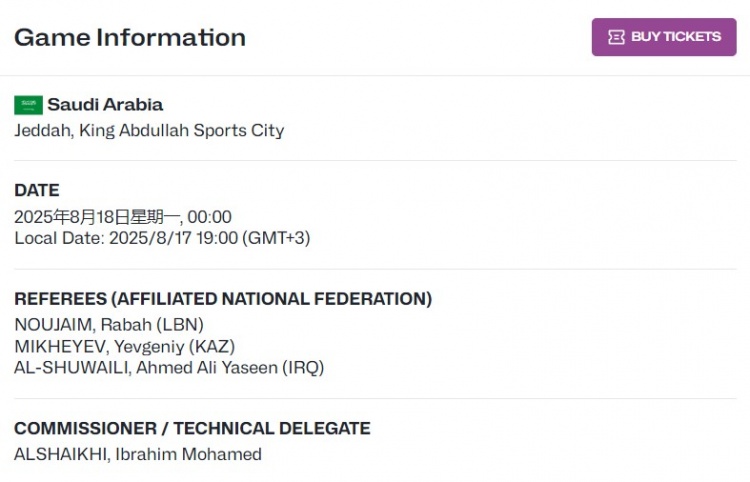 本場(chǎng)比賽的裁判組已經(jīng)出爐,吹罰過(guò)中韓大戰(zhàn)、中新大戰(zhàn)的伊拉克裁判Ahmed Ali Al-shuwaili今天繼續(xù)吹罰,吹罰過(guò)中新大戰(zhàn)的黎巴嫩裁判Rabah Noujaim今天也繼續(xù)吹罰,還有一名裁判是來(lái)自哈薩克斯坦的Mikheev Evgeniy。