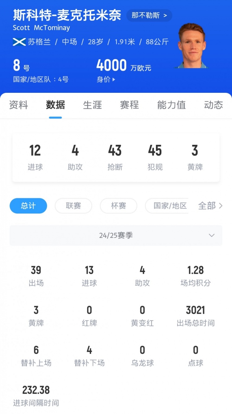 6月3日訊 那不勒斯奪得24-25賽季意甲冠軍,加盟球隊第一個賽季的麥克托米奈憑借出色表現(xiàn)當選賽季MVP。他的啟蒙教練則表示,麥克托米奈還有巨大的潛力。