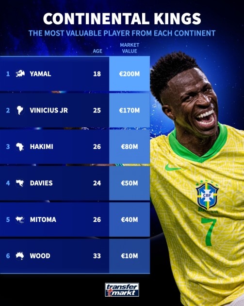 各大洲身價最高球員:
