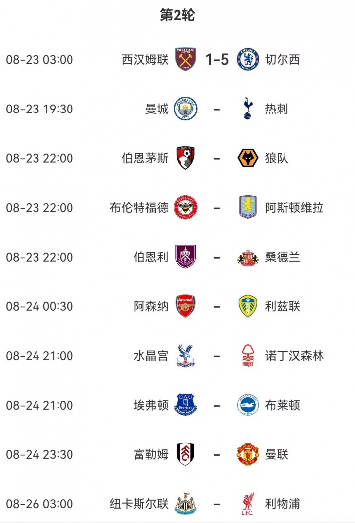 英超本輪賽程: