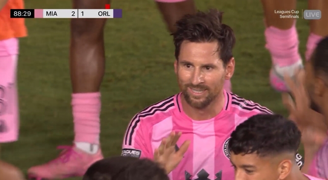 聯(lián)盟杯半決賽,邁阿密國際vs奧蘭多城。梅西梅開二度后和隊友慶祝,頭發(fā)立起來了!