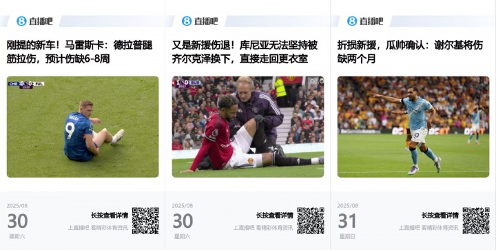 無論戰(zhàn)績如何,本輪聯賽似乎都并不能讓車&魔&城迷們完全滿意:切爾西和曼聯本輪聯賽中均有新援傷退,曼城新援謝爾基更是在本輪開始前就遭到大腿傷情缺陣。