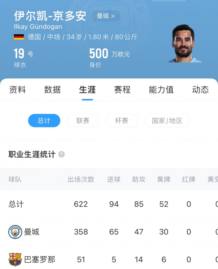京多安現(xiàn)年34歲,現(xiàn)身價(jià)500萬歐,他與曼城的合同明年到期,上賽季他為曼城出場50次,貢獻(xiàn)3球7助。