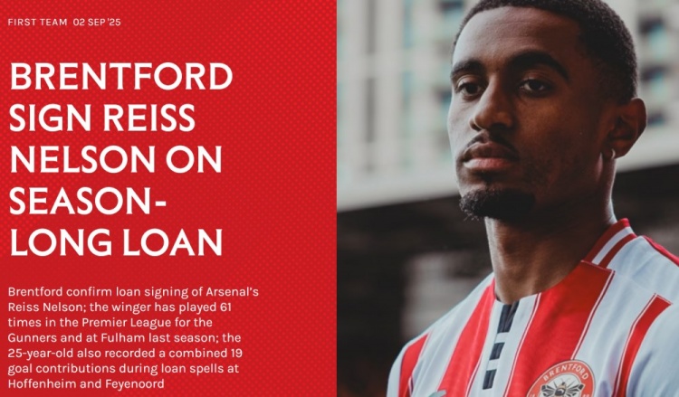 9月2日訊 布倫特福德官網(wǎng)宣布,租借阿森納右邊鋒尼爾森1個賽季。