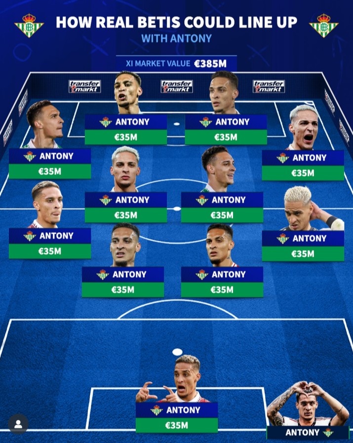 9月2日訊 五大聯(lián)賽夏窗關(guān)閉,德轉(zhuǎn)整活安東尼,貝蒂斯全員安東尼。