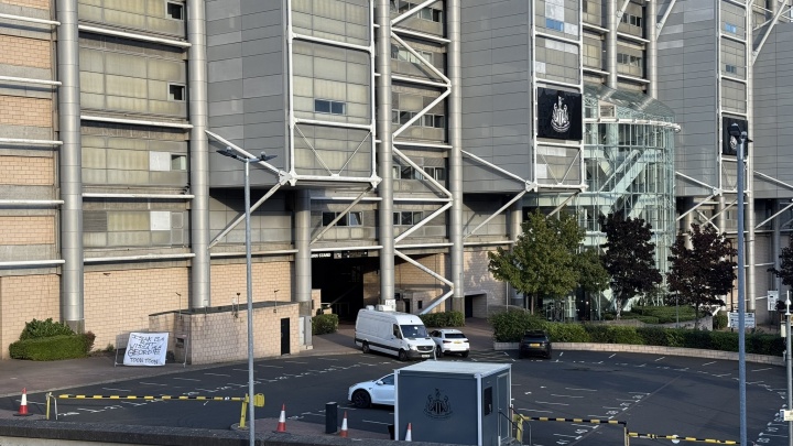 標語上寫著,Isak is a rat, Wissa is a Geordie, Toon Toon.(翻譯參考:伊薩克是叛徒,維薩是自家人,紐卡!紐卡!)