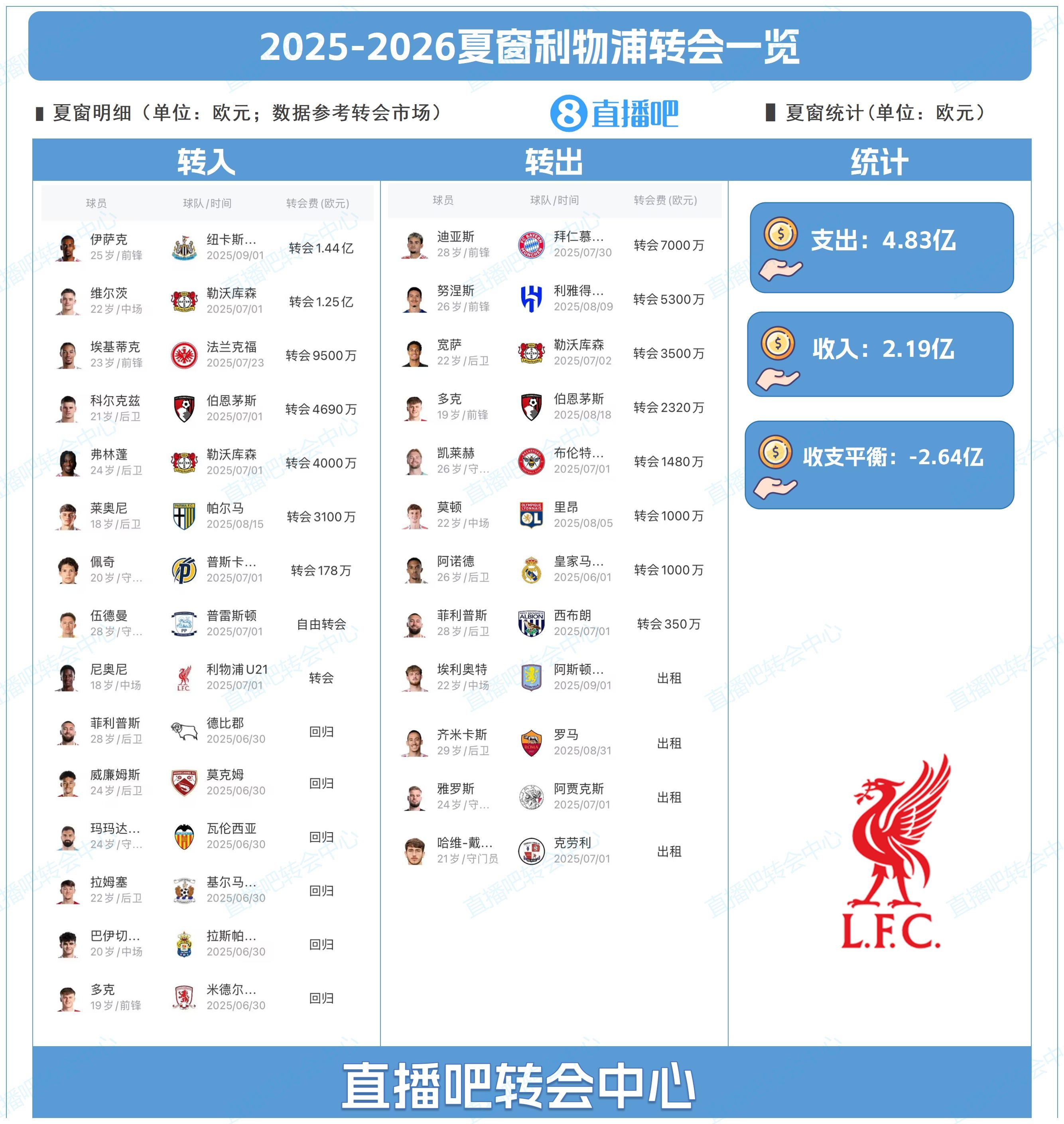 為吧友們總結(jié)了利物浦今夏的轉(zhuǎn)會(huì)操作,吧友們能打幾分?