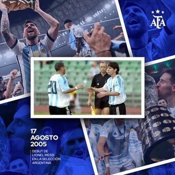 2005年8月17日,梅西在阿根廷對陣匈牙利的友誼賽中替補出場,完成個人在國家隊的首秀,至今已過去20年時間。