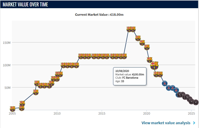內(nèi)馬爾33歲時(shí)身價(jià)↓
