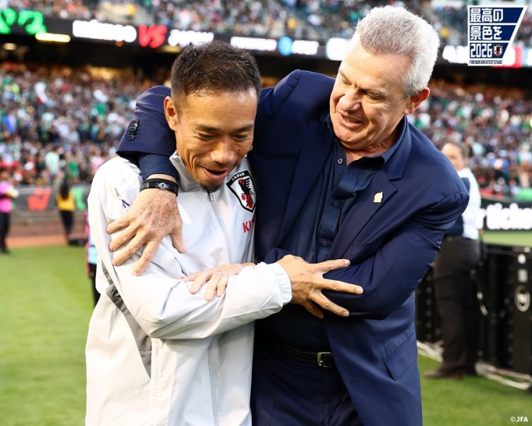 賽后日本國(guó)家隊(duì)官推曬出了墨西哥隊(duì)主帥阿吉雷與38歲日本隊(duì)老將長(zhǎng)友佑都的合影,照片中兩人如許久不見(jiàn)的老友般相擁致意。
