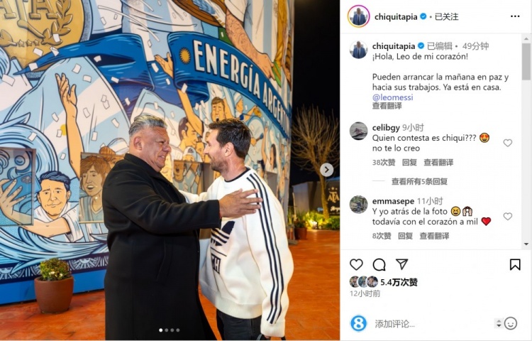 6月3日訊 阿根廷足協(xié)主席塔皮亞更新社媒動態(tài),曬出歡迎梅西歸隊的照片。