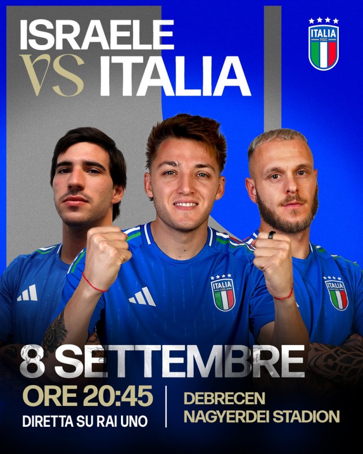 意大利國家隊官方社媒發(fā)布為此役制作的海報,雷特吉、托納利以及迪馬爾科出鏡。