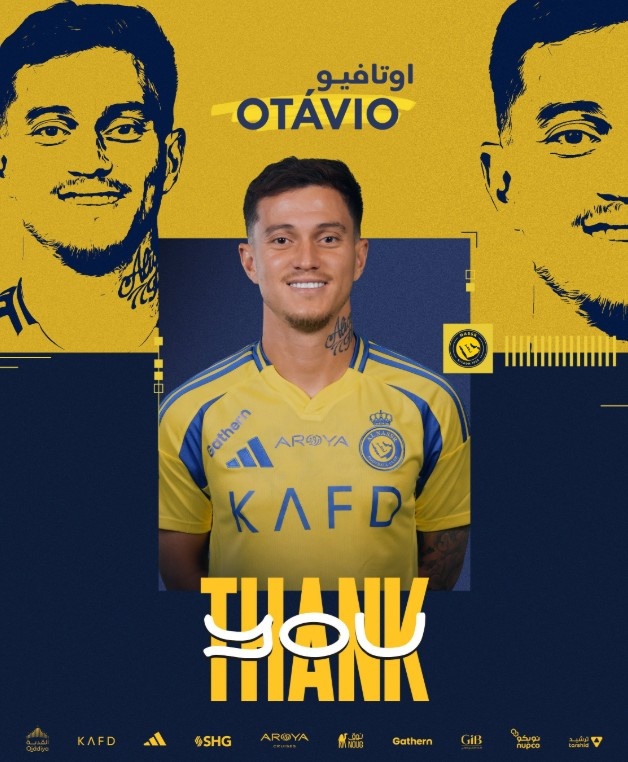 9月9日訊 官方消息,利雅得勝利中場奧塔維奧加盟庫迪西亞。