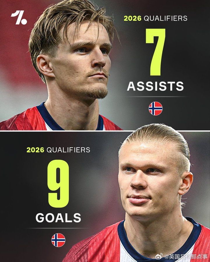 【挪威雙子星?】2026年世預(yù)賽歐洲區(qū),哈蘭德領(lǐng)跑進(jìn)球榜,厄德高領(lǐng)跑助攻榜