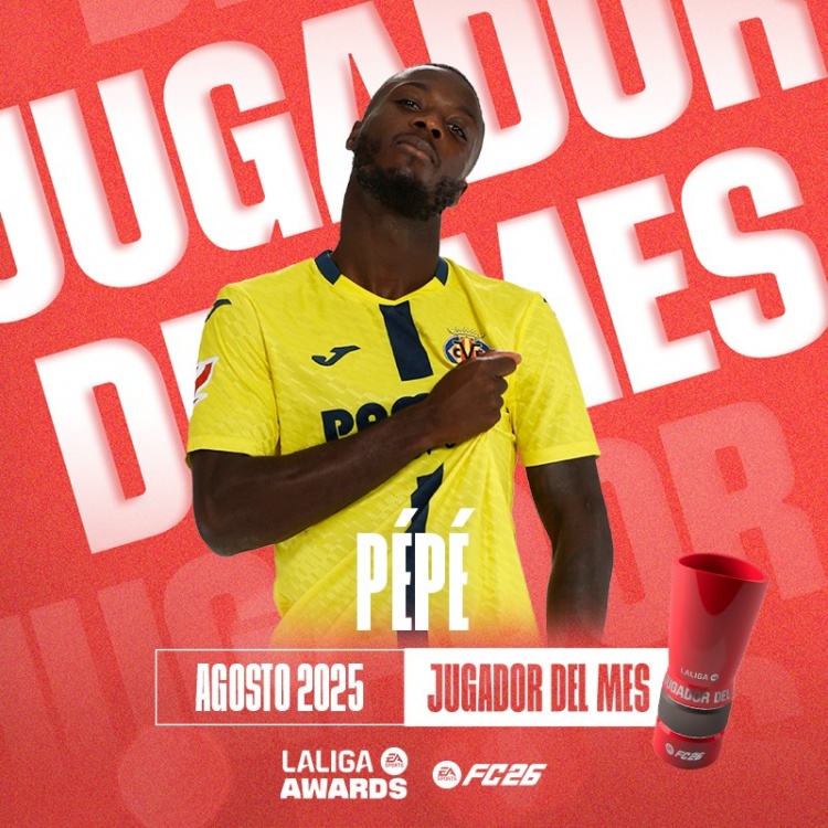 9月13日訊 西甲官方消息,比利亞雷亞爾邊鋒佩佩當(dāng)選聯(lián)賽8月最佳球員。