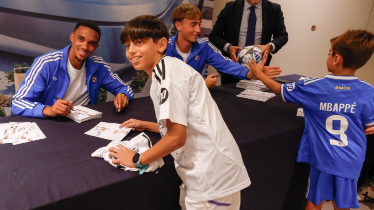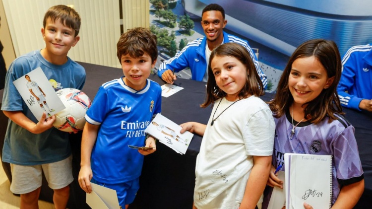 9月13日訊 據(jù)西班牙六臺(tái)報(bào)道,皇馬后衛(wèi)阿諾德和赫伊森為皇馬小球迷們簽名,并合影留念。
