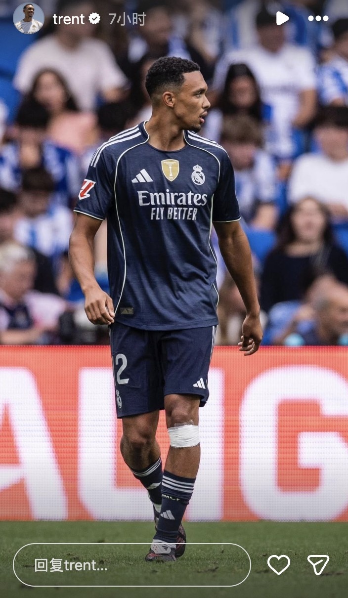 面對(duì)皇家社會(huì),替補(bǔ)登場(chǎng)的阿諾德幫助皇馬客場(chǎng)全取三分。阿諾德更新社交媒體慶祝勝利:+3,加油!