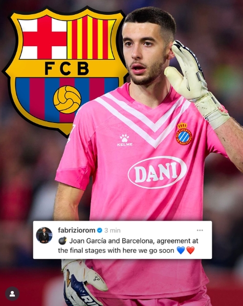 06月03日訊 據(jù)知名記者羅馬諾消息,西班牙人門將霍安-加西亞即將加盟巴薩,Here we go馬上到來(lái)。